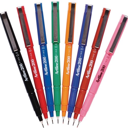Artline 200 Fineliner Pen Fine 0.4mm 8 Assorted Colours Pack Of 12