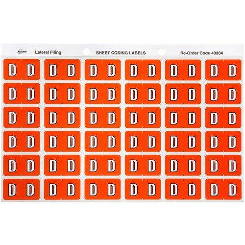 Avery Alphabet Coding Label D Side Tab 25x38mm Dark Orange Pack Of 180