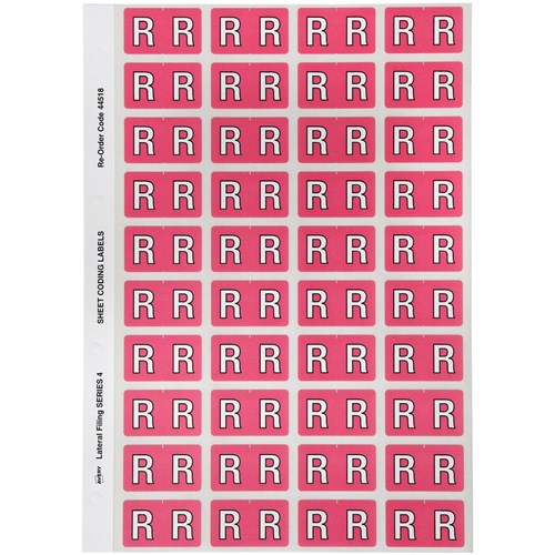 Avery Alphabet Coding Label R Side Tab 25x42mm Pink Pack Of 240