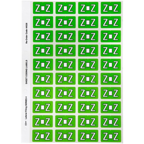 Avery Alphabet Coding Label Z Side Tab 25x42mm Light Green Pack Of 240