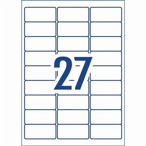 • Size: 63.5x29.6mm 405 labels, 15 sheets. 27 labels per sheet (27UP).