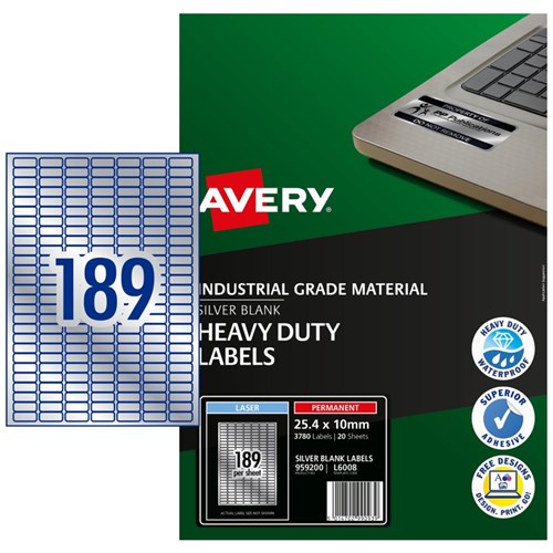Avery Heavy Duty Laser Labels Asset Tags Silver L6008 25.4x10 mm 189UP 3780 Labels