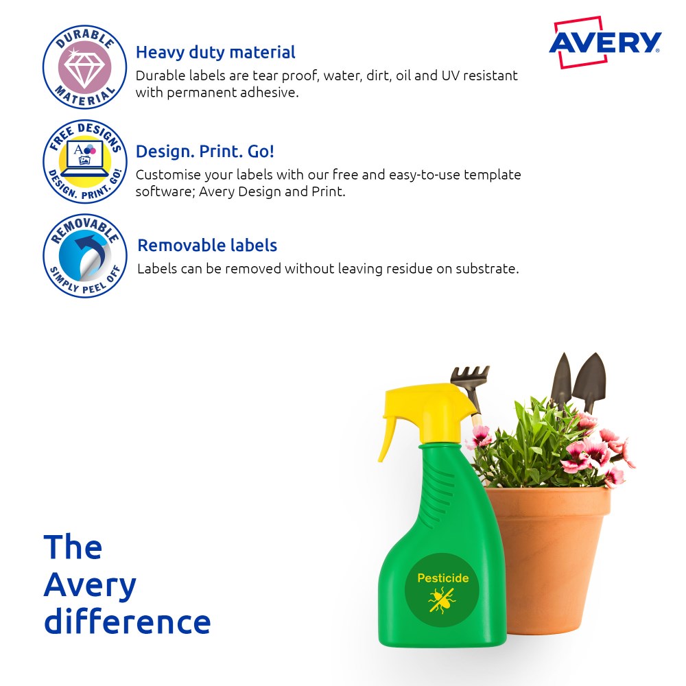 • Customise your labels with Avery Design and Print, available at averyproducts.com.au/print.