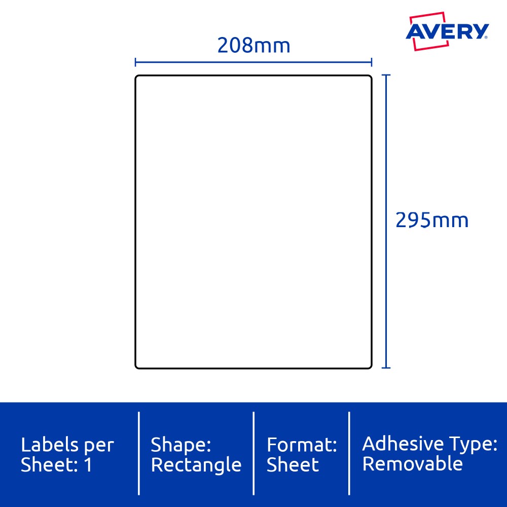 Avery Identification Removable Heavy Duty Laser White L4775 208x295mm 1UP 20 Labels