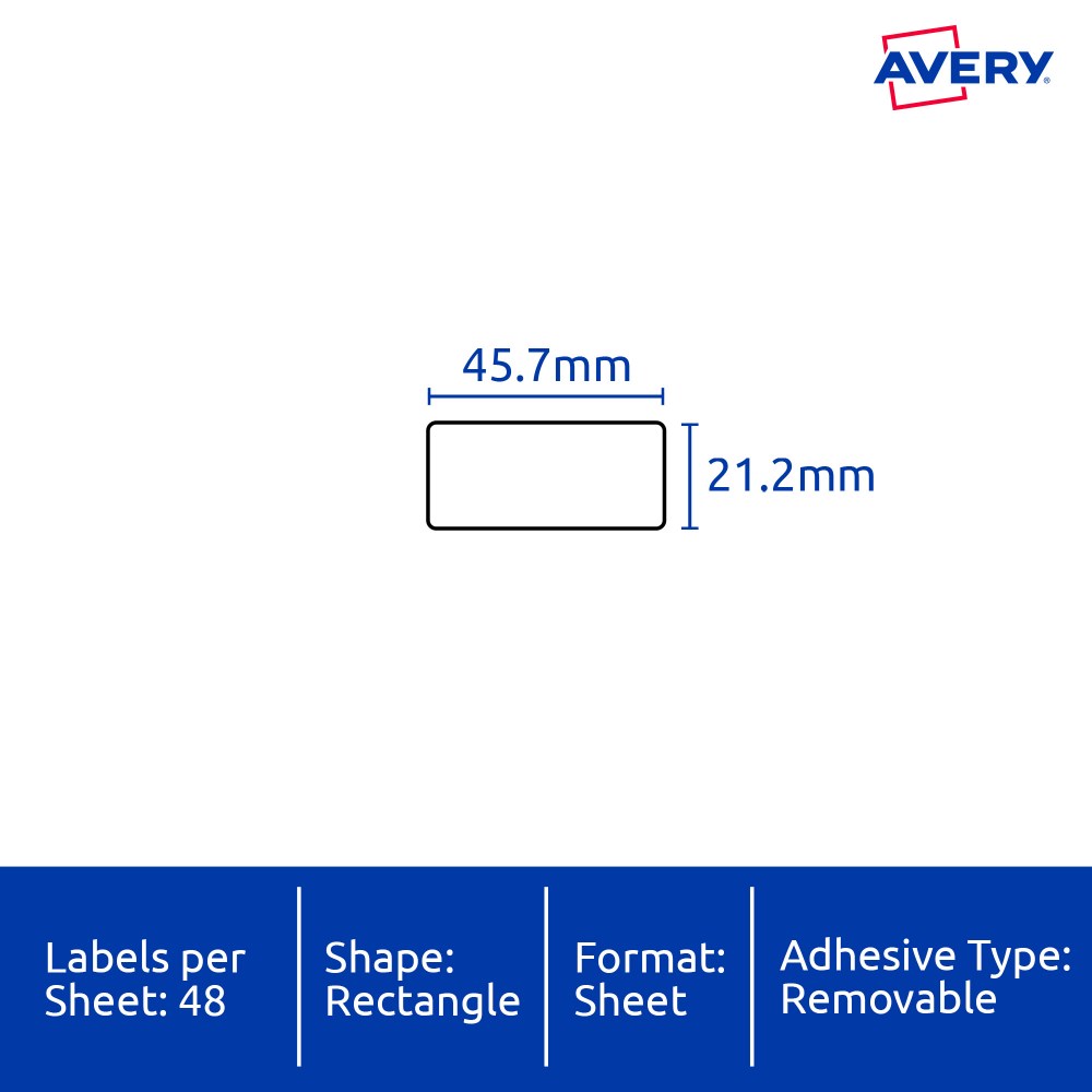 Avery Identification Removable Heavy Duty Laser White L4778 45.7x21.2mm 48UP 960 Labels