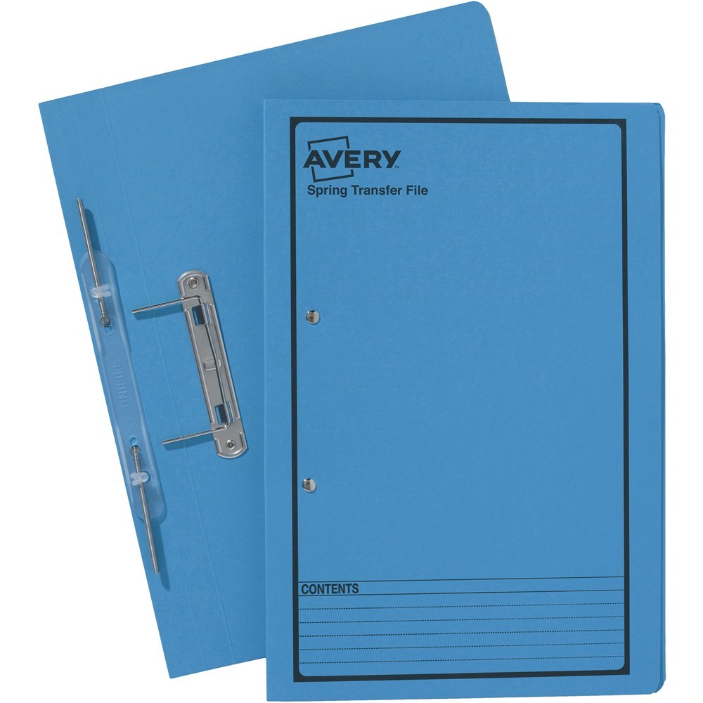 Avery Spring Transfer File Foolscap Blue With Black Print