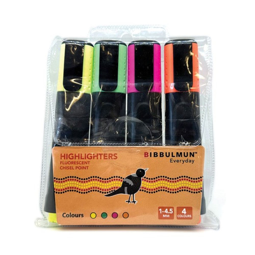 Bibbulmun Highlighters Chisel 1-4.5mm Assorted Fluro Wallet Of 4
