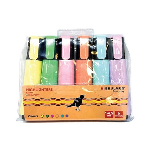 Bibbulmun Highlighters Chisel 1-4.5mm Pastel Assorted Wallet Of 6
