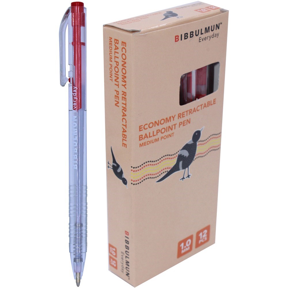 Bibbulmun Retractable Ballpoint Economy Pen Medium 1mm Red Pack of 12