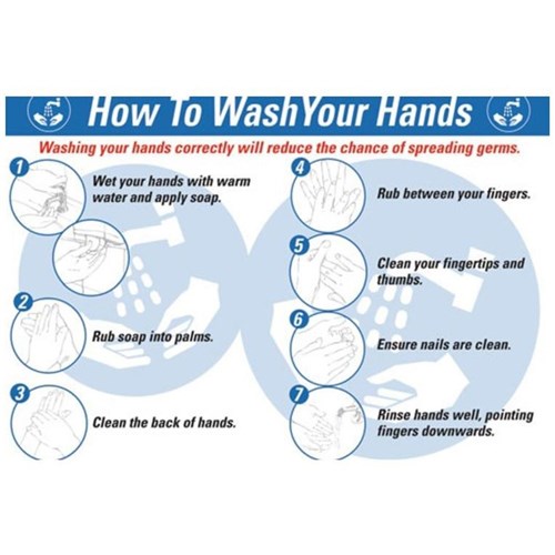 Brady PVC Wall Poster How To Wash Your Hands Step Guide 600W x 420mmH Semi-Rigid