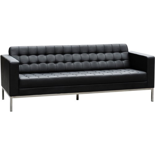 • Classic luxury, square- tufted leather lounge. Chrome feet.