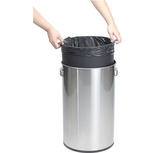 • Wide lid covers trash bag completely.