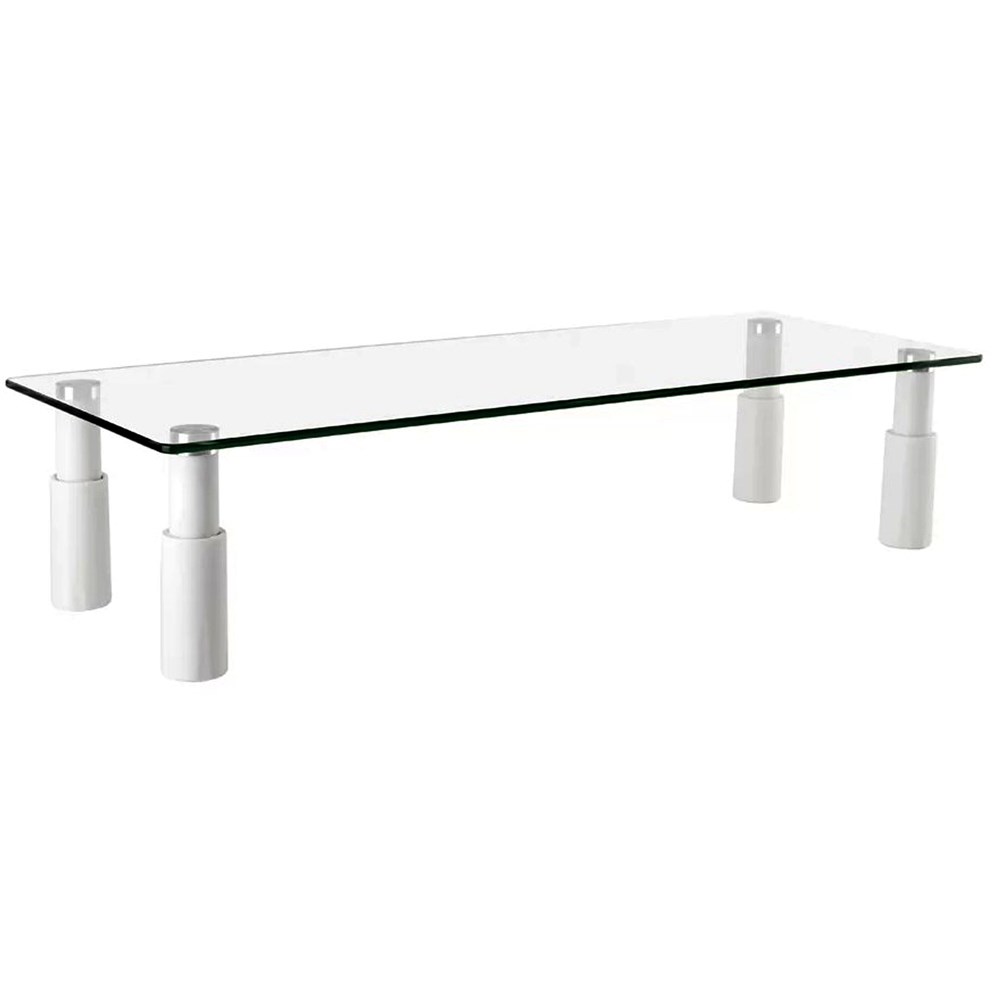 Ergovida Glass Top Monitor Stand Rectangular With Four Height Adjustable White Legs