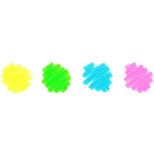 • Super fluorescent colours Yellow, Green, Blue and Pink.