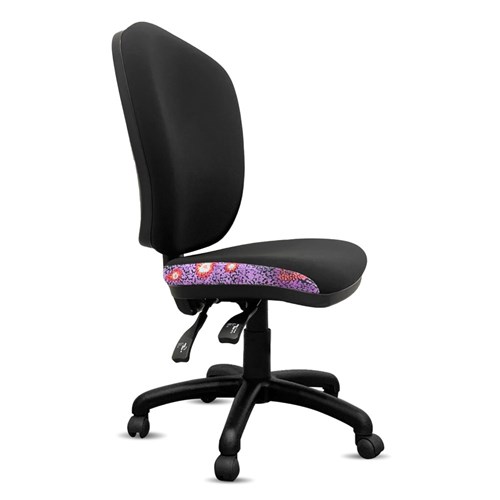 • A unique commercial fabrics designed by Andrea Adamson (Indigenous Artist) combined with K2 Black Fabric to upholster the chair.