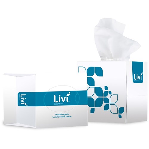Livi Essentials Facial Tissues Luxury Hypoallergenic Cube 2 Ply 90 Sheets Box Of 24