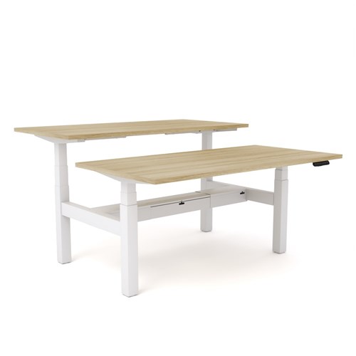 OLG Agile Motion Double Sided Desk + Cable Tray 1500W x1500D 620-1270mmH White/New Oak