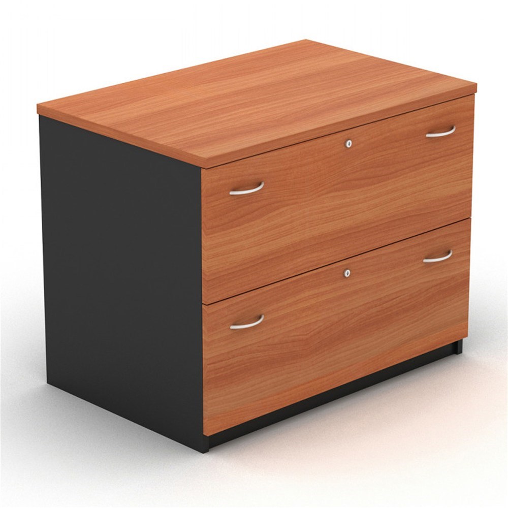 • OM Lateral Filing Cabinet 2 Drawer 900W x 600D x 720mmH Cherry And Charcoal