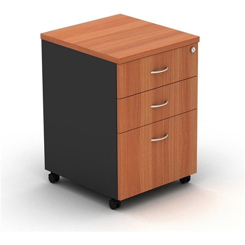 • OM Mobile Pedestal 2 Drawer 1 File 468W x 510D x 685mmH Cherry And Charcoal