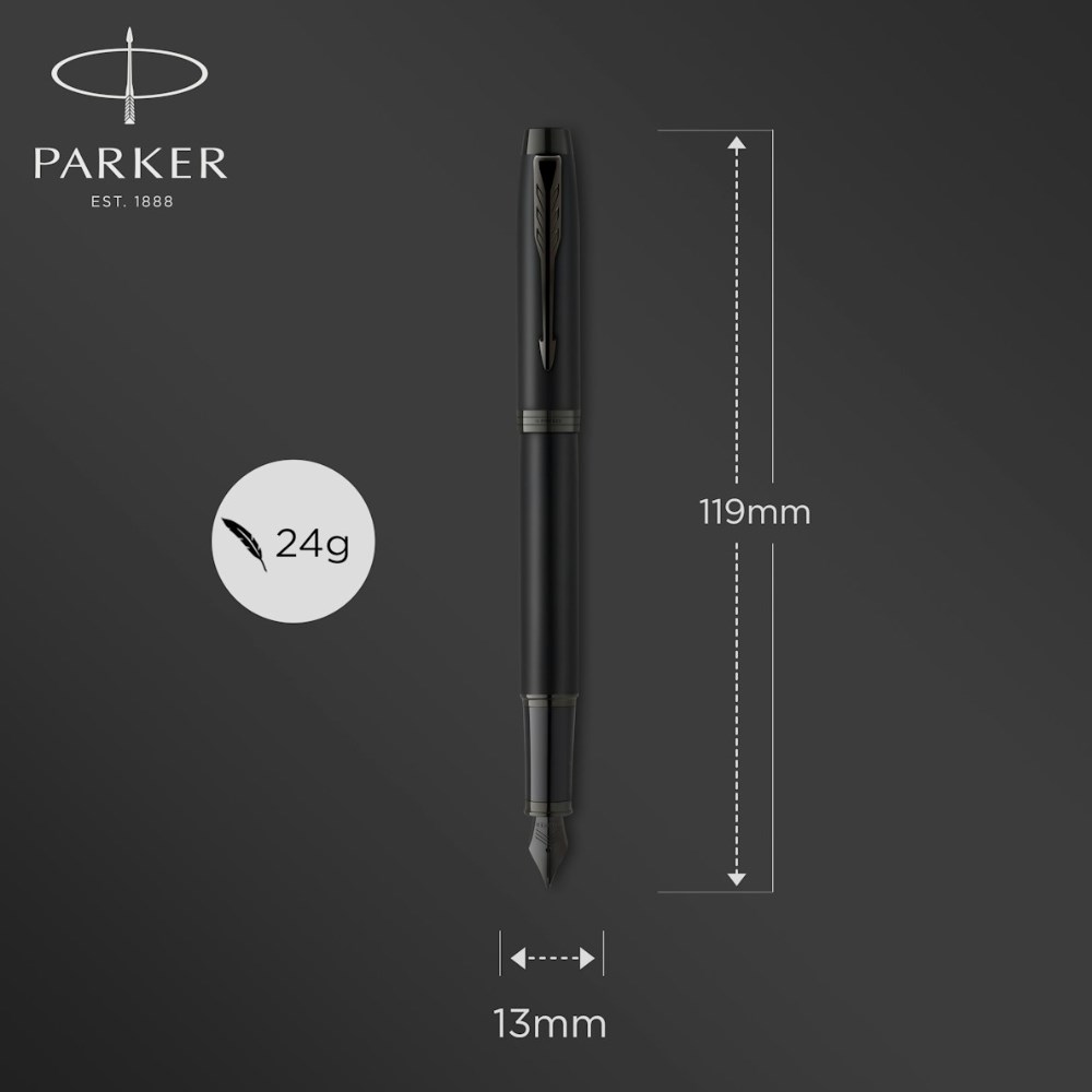 Parker IM Achromatic Fountain Pen Matte Black Trim Blue Refill