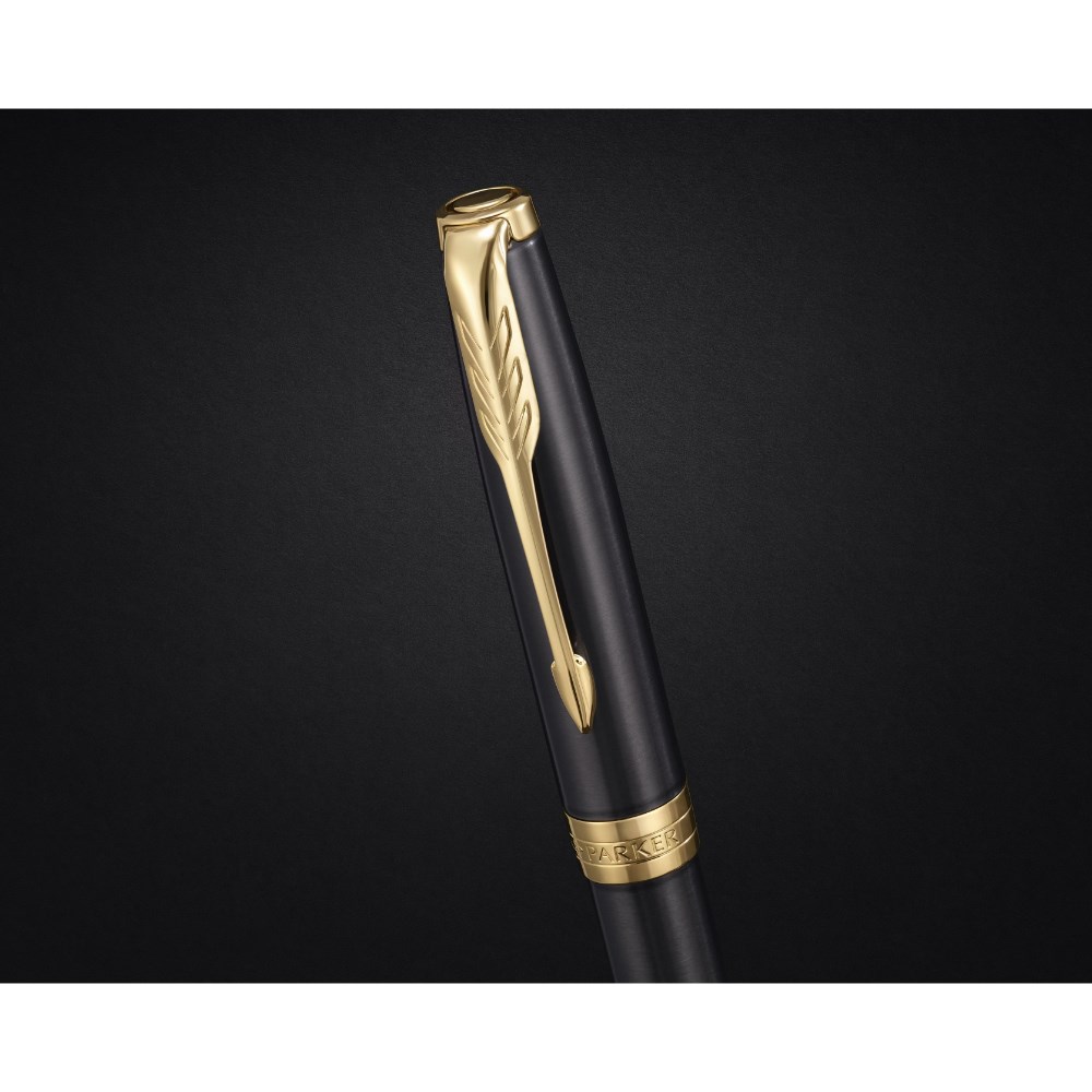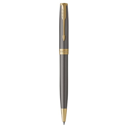 Parker Sonnet Ballpoint Pen Grey Lacquer Gold Trim Black Refill