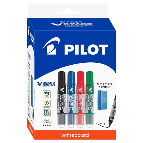 Pilot BeGreen V Board Master Whiteboard Marker Bullet Tip Assorted Pack of 4 with Eraser