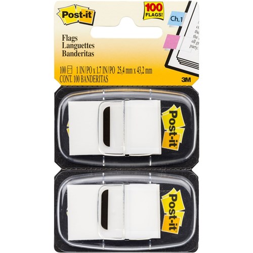 Post-It 680-WE2 Flags Twin Pack 25x43mm White Pack of 2