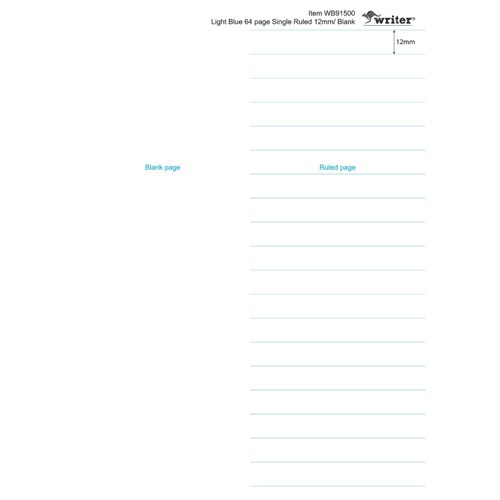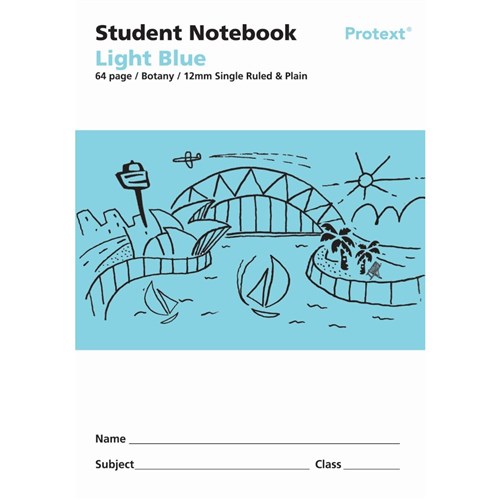 Protext Student Note Book 250 x 175mm Single Ruled 12mm/Plain 64 Page Light Blue