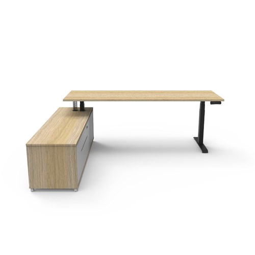 Rapidline Boost+ Executive Desk + LHS Cabinet 2270W x 1936D x 620-1270mmH Oak/Black