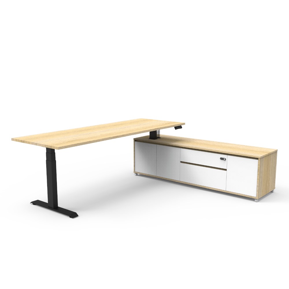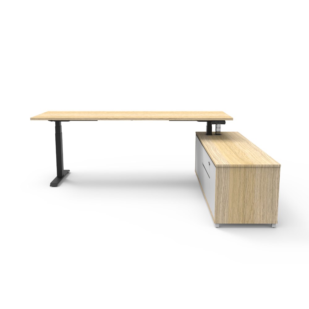 Rapidline Boost+ Executive Desk + RHS Cabinet 2270W x 1936D x 620-1270mmH Oak/Black