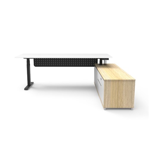 Rapidline Boost+ Executive Desk + RHS Cabinet+Panel 2270W x 1936D x 620-1270mmH Wht/Blk