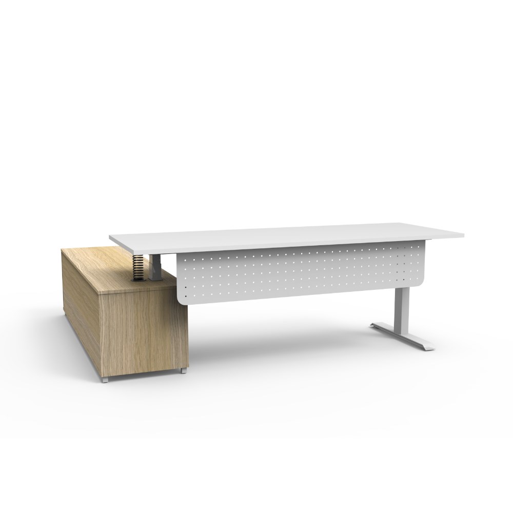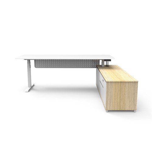 Rapidline Boost+ Executive Desk + RHS Cabinet+Panel 2270W x 1936D x 620-1270mmH Wht/Wht