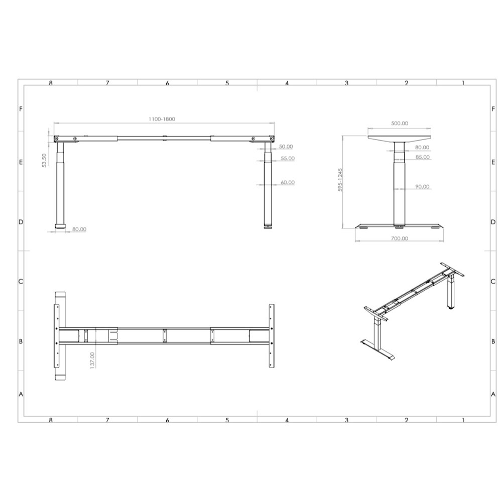 • Frame Dimensions: 1100mm-1800W x 700D x 595-1245mmH.