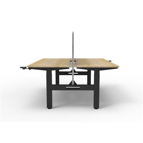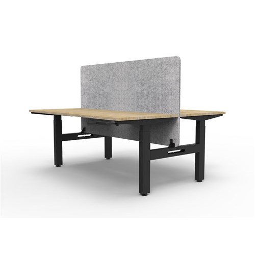 • Manual crank height adjustable 2 person back to back workstation with Natural Oak top and Black Satin frame, Grey Eco screen.
