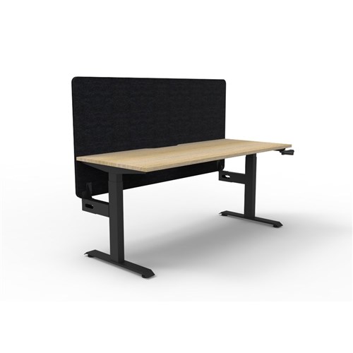 • Manual crank height adjustable single sided workstation with Natural Oak top and Black Satin frame, Black Eco screen.
