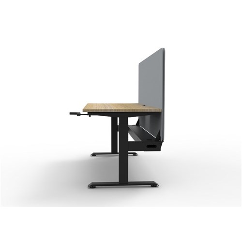 • Manual crank height adjustable single sided workstation with Natural Oak top and Black Satin frame, Grey Eco screen and cable tray.