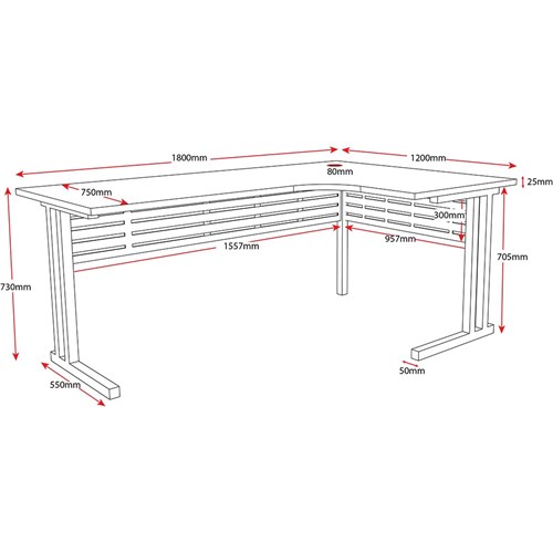 Rapidline C Leg Corner Workstation 1800/1200W x 750D x 730mmH Natural Oak/Silver