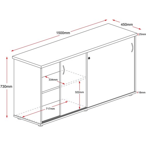 • Sliding doors and an internal shelf.