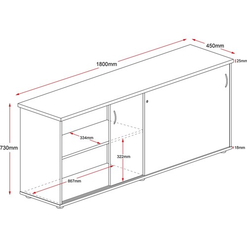 • Sliding doors and an internal shelf.
