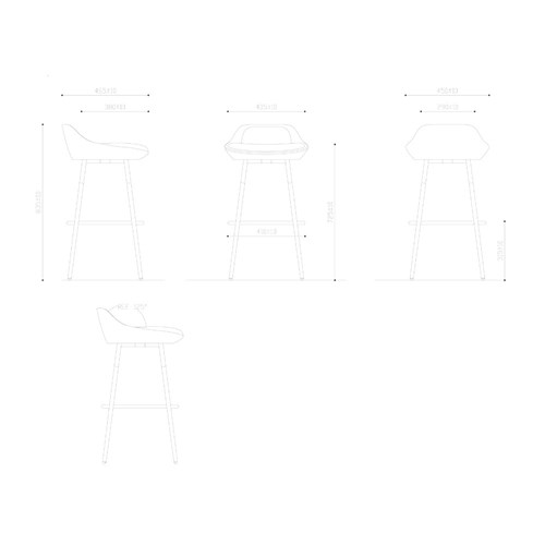 • Features a comfortable fabric seat and a robust, powder-coated base with a footrest for added support. Perfect for breakout space or office kitchen.