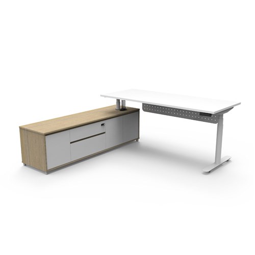 Rapidline Halo+ Executive Desk + LHS Cabinet + Panel 2020W x 1936D x 620-1270mmH White/Wht