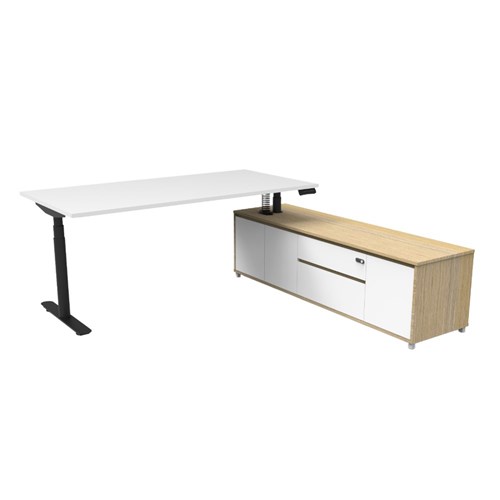 Rapidline Halo+ Executive Desk + RHS Cabinet 2020W x 2011D x 620-1270mmH White/Black