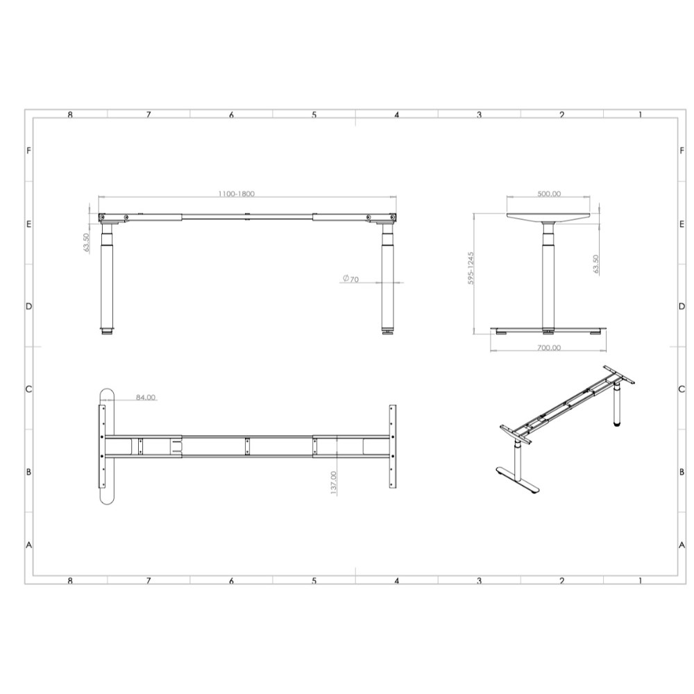 • Frame Dimensions: 1100mm-1800W x 700D x 595-1245mmH.