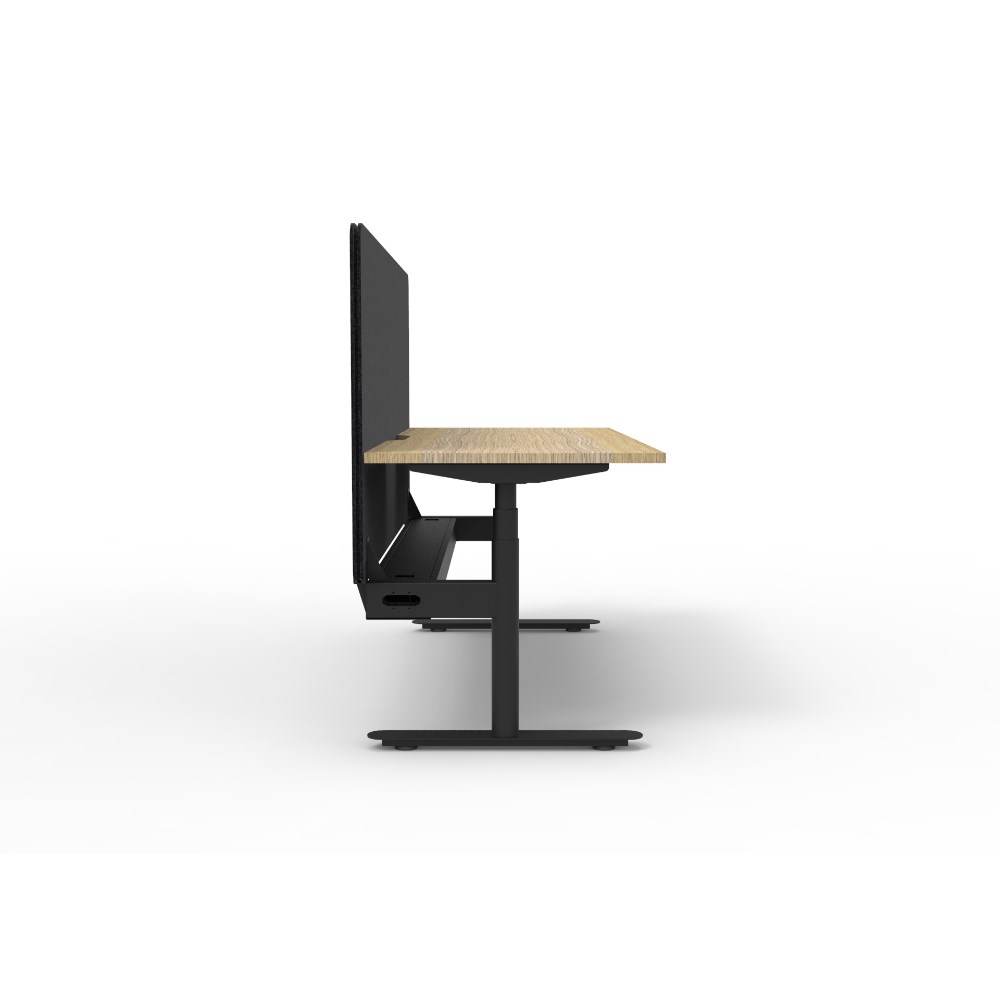 Rapidline Halo+ Single Sided Workstation + Black Eco Screen +Tray 1200Wx620-1270mmH Oak/Bl
