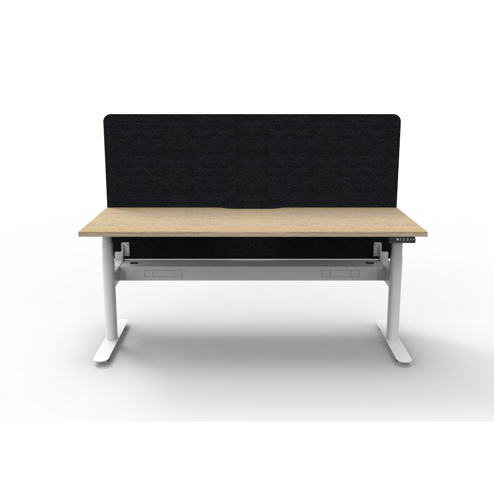 Rapidline Halo+ Single Sided Workstation + Black Eco Screen +Tray 1500Wx620-1270mmH Oak/Wh