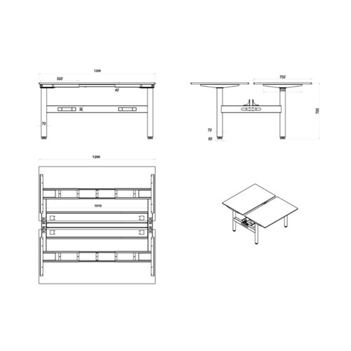 • Desk Per User Dimensions: 1200W x 750D x 730mmH. Height With Screen: 1330mm.