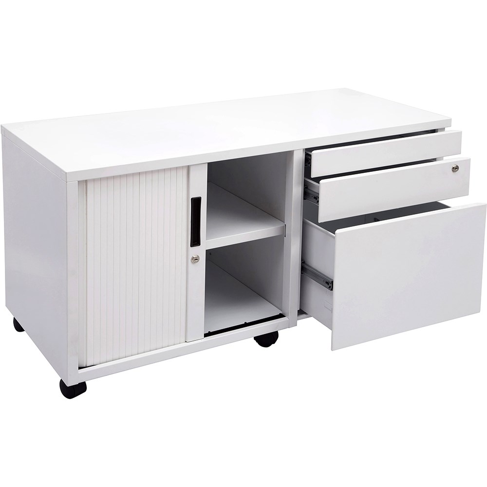 Rapidline Mobile Caddy Left Hand Tambour Door 1050W x 500D x 615mmH White