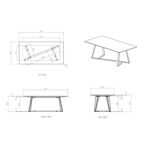 Rapidline Piedra Coffee Table 1200W x 600D x 420mmH Grey Carrara Top Black Base