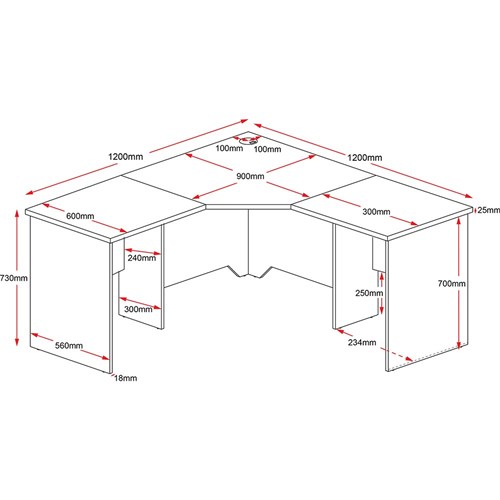 • 3 piece corner workstation.