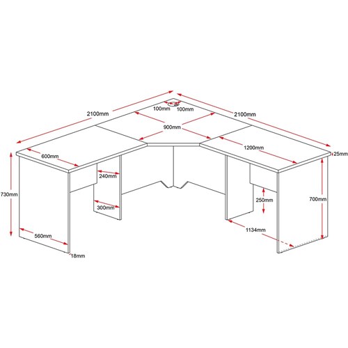 Rapidline Rapid Worker Corner Workstation 2100/2100W x 600D x 730mmH Cherry And Ironstone